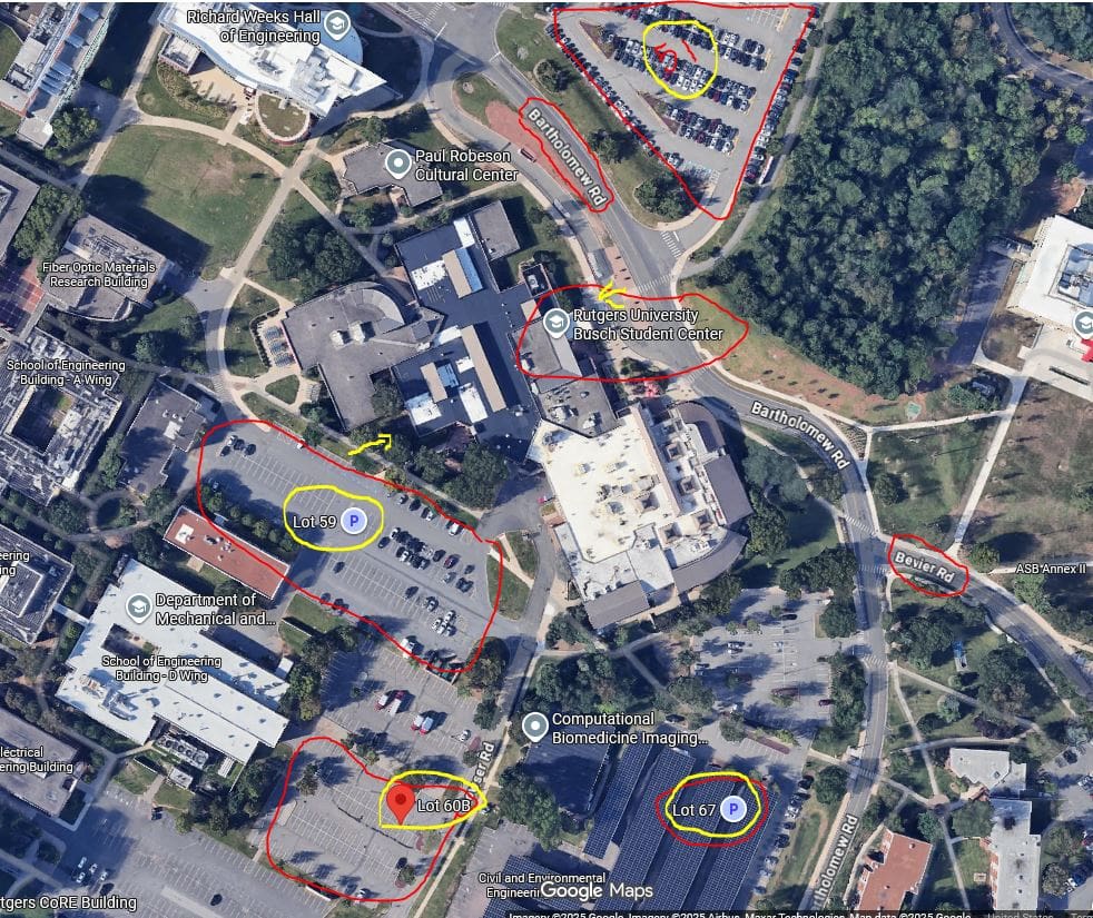 The Google Map directions to Busch Student Center and parking- Lots 51, 59, 60B & 67 (see map for lot locations)– https://maps.app.goo.gl/LNeY9WhQbHMMGPHQ9