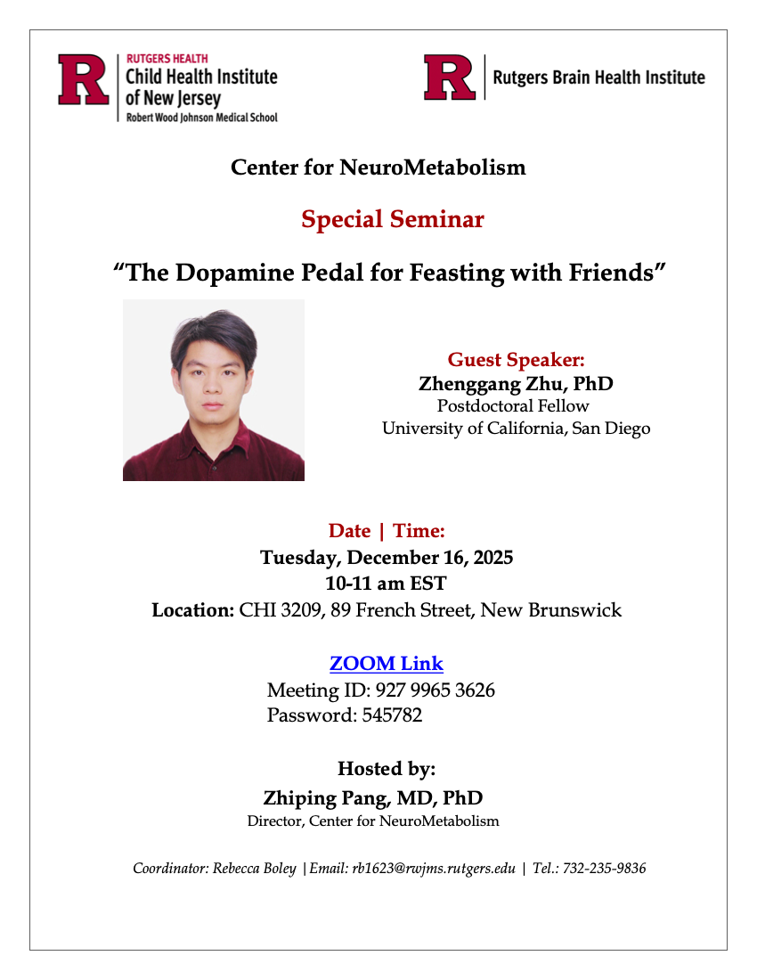 Center for NeuroMetabolism Special Seminar: Zhenggang Zhu, PhD