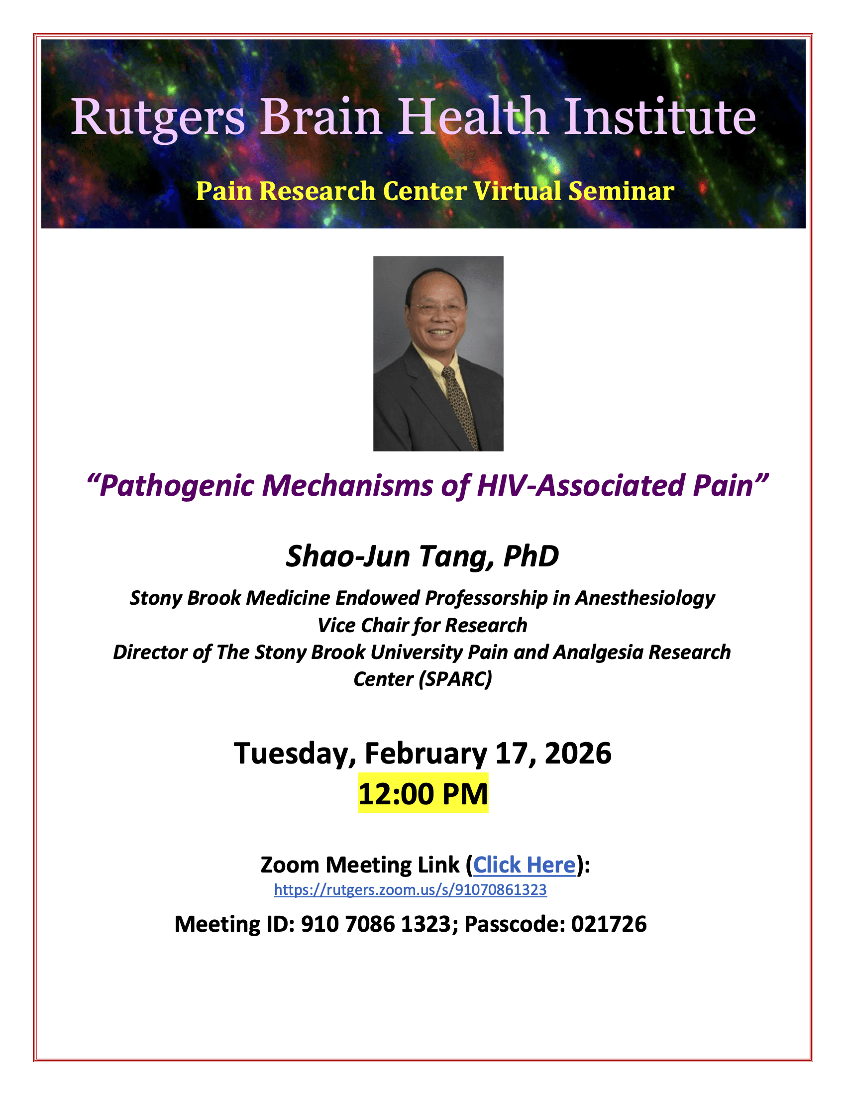 BHI Pain Research Center Virtual Seminar: Shao-Jun Tang, PhD