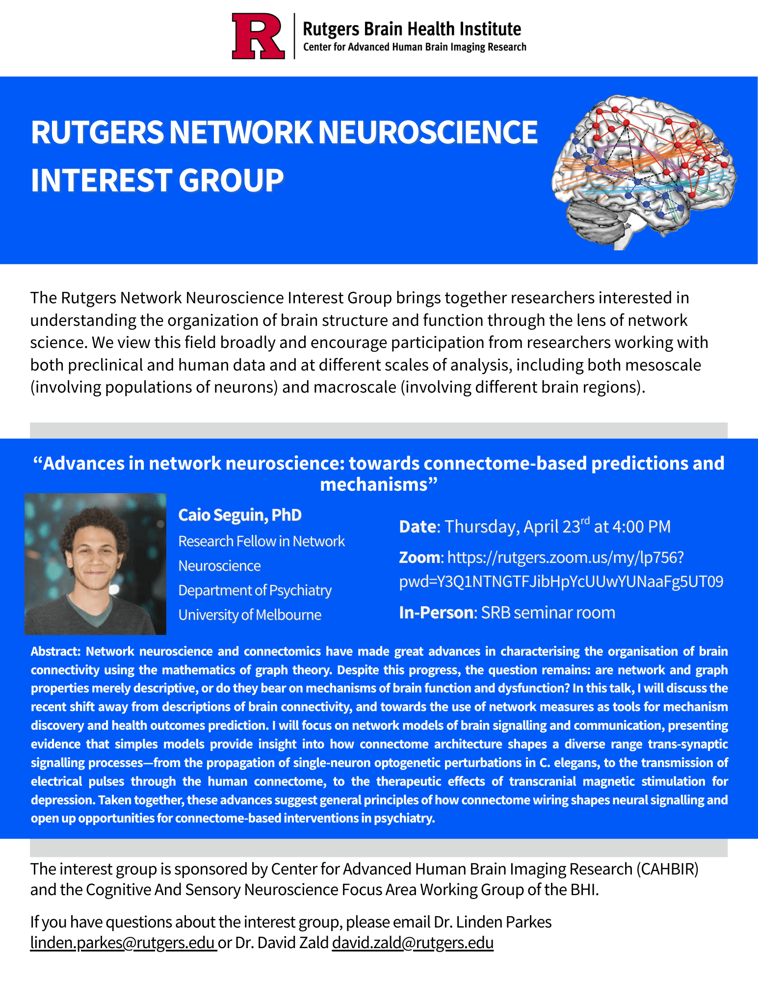 Rutgers Network Neuroscience Interest Group: Caio Seguin, PhD