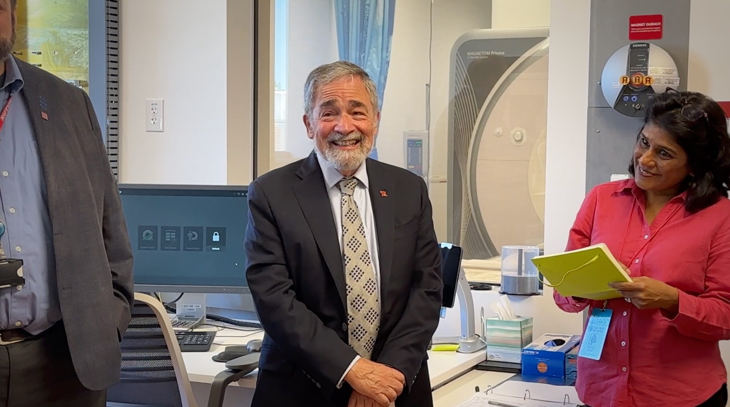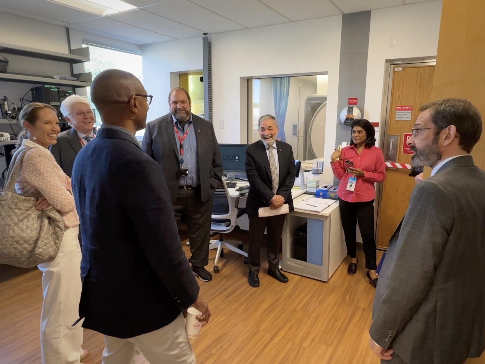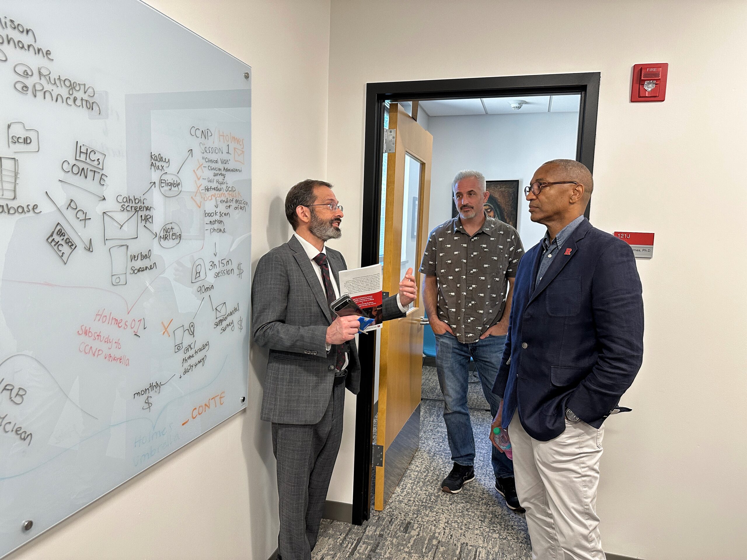 We were honored to welcome Rutgers University President William Tate IV and Chancellor Brian Strom to the Center for Advanced Human Brain Imaging Research (CAHBIR) in the Rutgers Brain Health Institute (BHI) on August 22! BHI Director Dr. Gary Aston-Jones’ presentation highlighted how BHI, one of the largest neuroscience institutes in the world, has fostered the growth of cutting-edge research at Rutgers over the last ten years, advancing brain health through innovative basic, translational and clinical research. President Tate toured CAHBIR’s human brain imaging research core facility which houses new 3T MRI, EEG and TMS equipment. The state-of-the-art facility on Rutgers Busch campus in Piscataway supports research on human brain function, structure, and disorders. Learn more