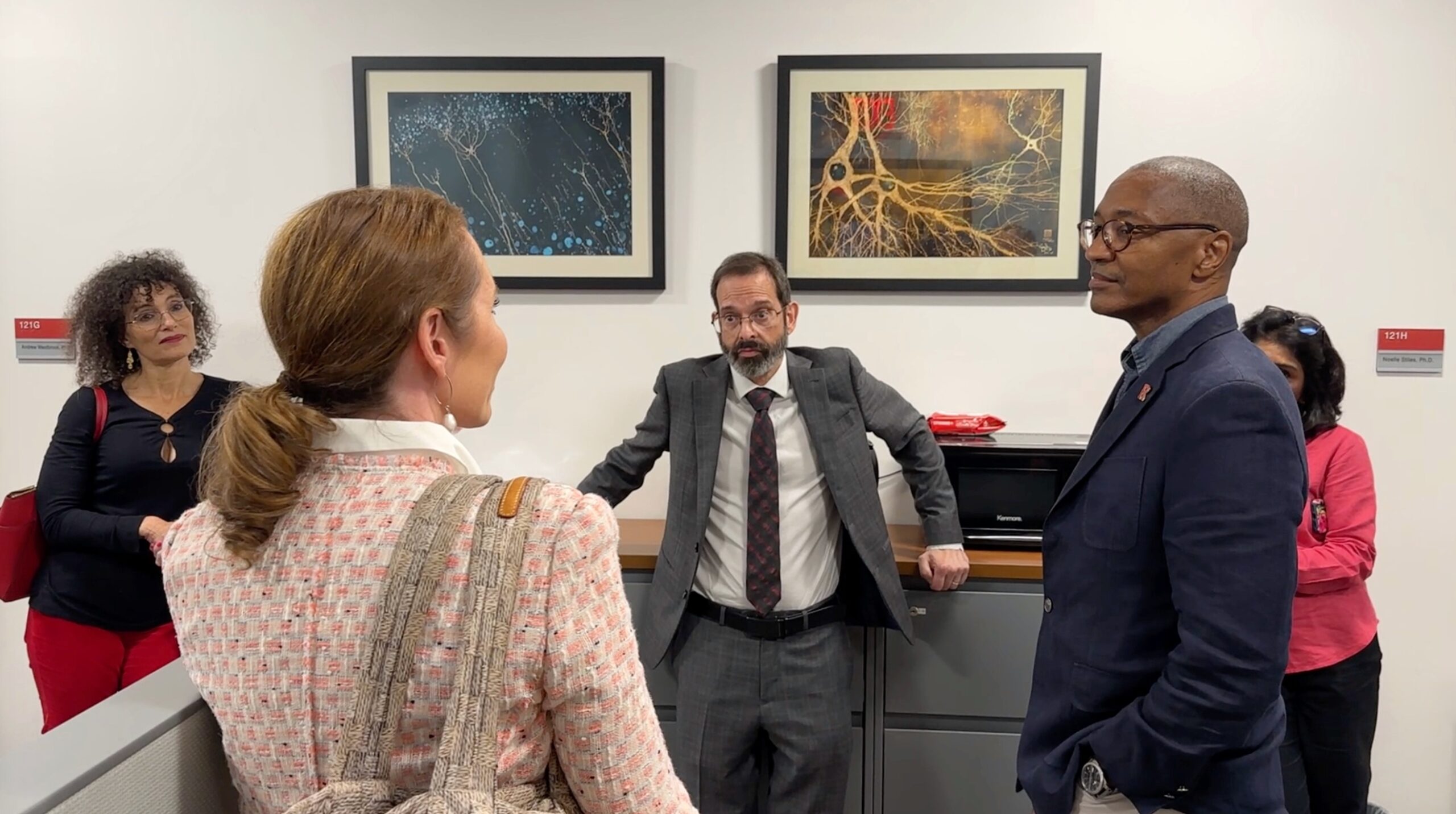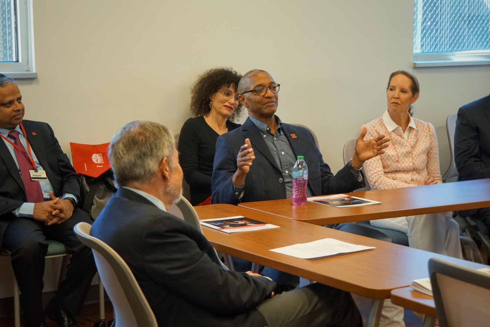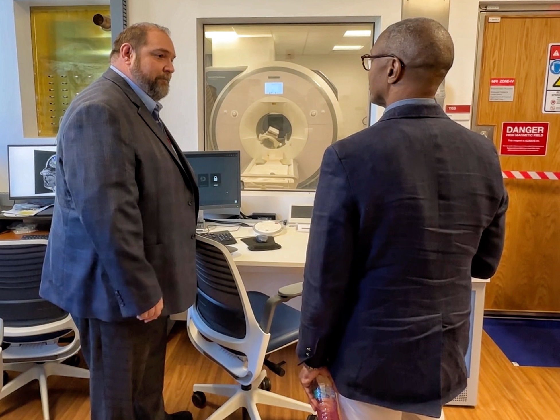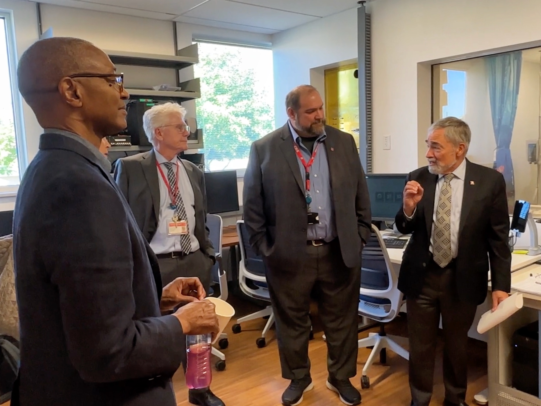 We were honored to welcome Rutgers University President William Tate IV and Chancellor Brian Strom to the Center for Advanced Human Brain Imaging Research (CAHBIR) in the Rutgers Brain Health Institute (BHI) on August 22! BHI Director Dr. Gary Aston-Jones’ presentation highlighted how BHI, one of the largest neuroscience institutes in the world, has fostered the growth of cutting-edge research at Rutgers over the last ten years, advancing brain health through innovative basic, translational and clinical research. President Tate toured CAHBIR’s human brain imaging research core facility which houses new 3T MRI, EEG and TMS equipment. The state-of-the-art facility on Rutgers Busch campus in Piscataway supports research on human brain function, structure, and disorders. Learn more